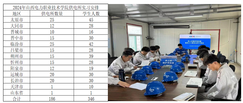 2.打造供電所實習網(wǎng)絡(luò)。學(xué)院充分發(fā)揮電力行業(yè)辦學(xué)優(yōu)勢,主動爭取省電力公司的政策支持,與西藏公司、朔州公司等重點企業(yè)共建產(chǎn)教融合實踐基地,構(gòu)建了覆蓋全省200余個基層供電所和國網(wǎng)客服中心(北中心)的實習基地。學(xué)生在3—4個月的實習過程中,深入電力生產(chǎn)一線,在設(shè)備巡檢、電力運維、客戶服務(wù)等方面掌握了多項實用技能。2024年累計向系統(tǒng)內(nèi)一線崗位輸送346名實習生,大幅提升了學(xué)生的實踐動手能力。
