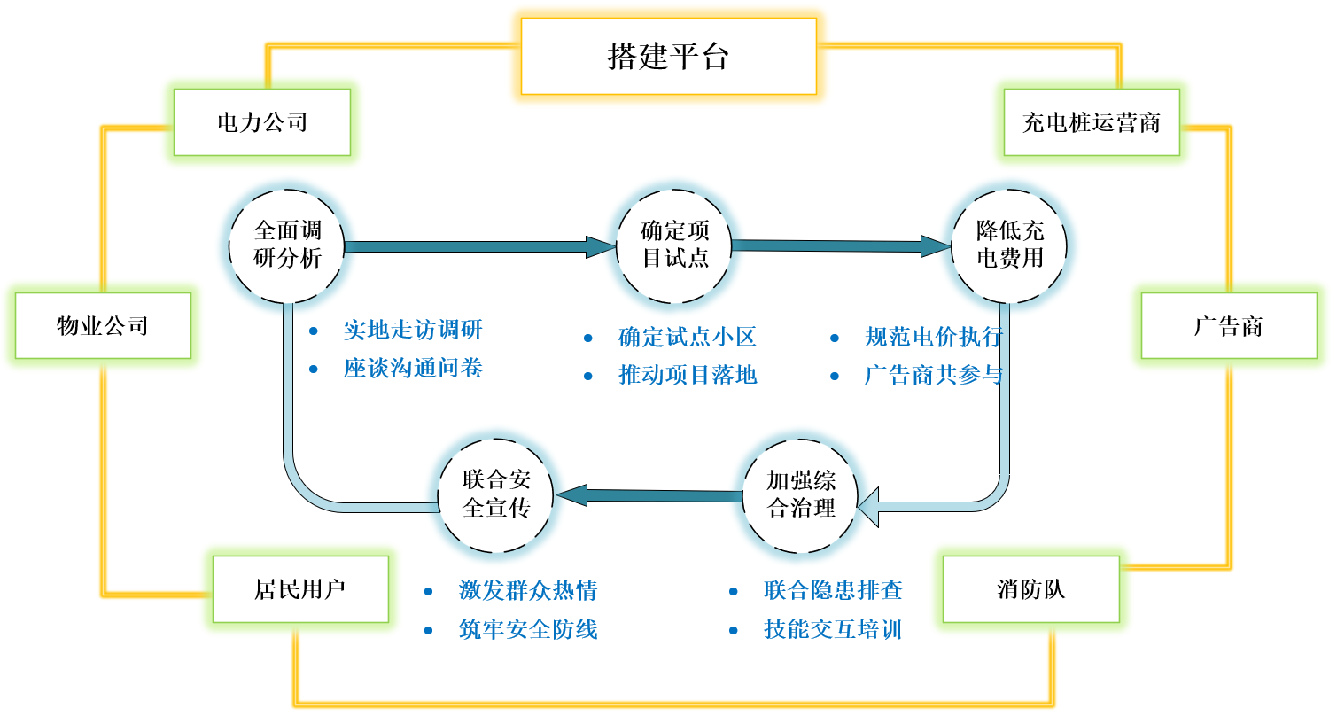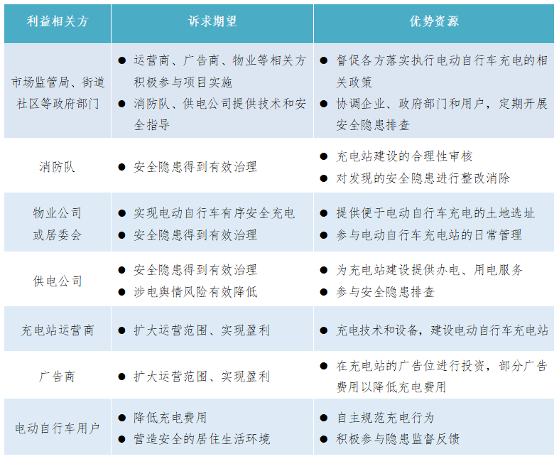 聚焦充電樁建設、運營運維、費用透明等重點難點,識別并引入街道社區(qū)、物業(yè)、消防隊、充電站運營商、廣告商等利益相關(guān)方,充分考慮各方訴求、期望,推動各方自愿融入、合作共贏,發(fā)揮各方管理優(yōu)勢、服務優(yōu)勢、技術(shù)優(yōu)勢。