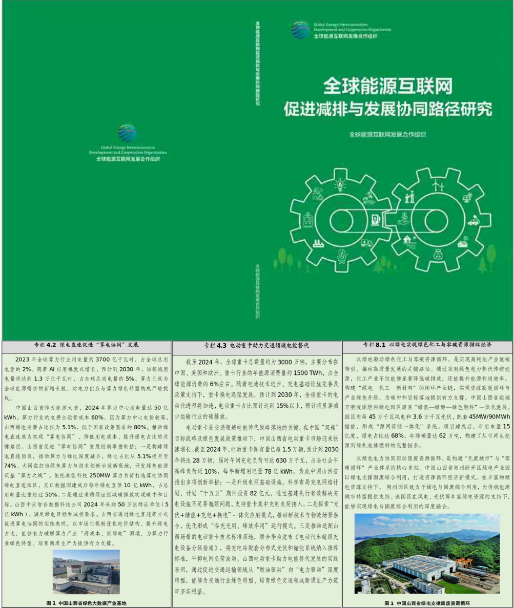 第一項案例是綠電直連促進(jìn)算電協(xié)同發(fā)展案例。其描述的是通過構(gòu)建綠電直連園區(qū),推動算力與綠電深度融合,將綠電占比從5.1%提升至74%,有力破解算力產(chǎn)業(yè)“高成本、低綠電”困境。第二項案例是電動重卡助力交通領(lǐng)域電能替代案例。其描述的是通過升級電網(wǎng)基礎(chǔ)設(shè)施、探索“光伏+儲能+充電+換電”一體化應(yīng)用模式,能夠為交通行業(yè)綠色轉(zhuǎn)型筑牢堅實根基。第三項案例是綠色化工與零碳資源循環(huán)經(jīng)濟(jì)案例。其描述的內(nèi)容包括兩項,一是運城萬榮液體燃料綠電園區(qū)構(gòu)建從可再生能源到綠色液體燃料的完整鏈條,年降碳量達(dá)62萬噸;二是朔州經(jīng)開區(qū)綠電產(chǎn)業(yè)園以綠電支撐固廢綜合利用,打造資源循環(huán)經(jīng)濟(jì)新模式。